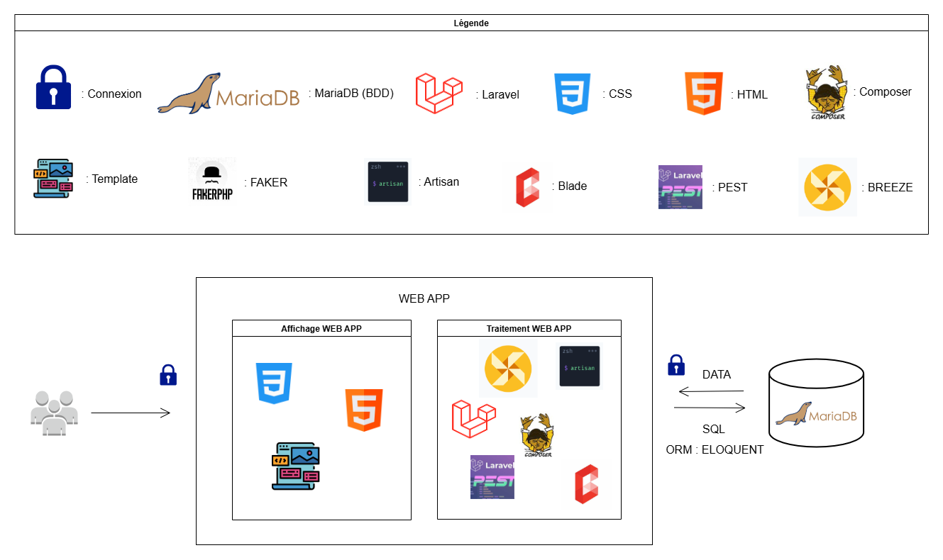 - Tests : Pest (framework de test basé sur PHPUnit)